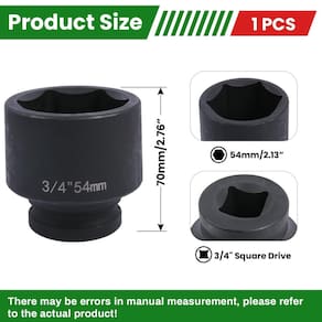 IMPORTANTE: Se for um produto elétrico, ele pode ser compatível com uma tomada de 110 volts. Se utilizado fora dos Estados Unidos, pode ser necessário um conversor de voltagem para garantir a operação adequada. Verifique se o produto que você está comprando é elétrico antes de considerar essas informações. Soquete de impacto de 54 mm com acionamento de 3/4" YtkAvq, soquetes de impacto padrão de 6 pontos feitos com liga de aço cromo-molibdênio, métrico -?Tamanho - Unidade?: 3/4 polegadas, tamanho do soquete de 6 pontos: 54 mm, comprimento total: 70 mm/2,76 polegadas. As especificações estão claramente marcadas na superfície do soquete, o que é fácil de identificar e melhora a eficiência do trabalho. -?Construção durável em aço de alto carbono?: Feito de aço de alto carbono, este soquete de impacto é construído para suportar aplicações pesadas e de alto torque, oferecendo resistência e durabilidade superiores. -?Design preciso de 6 pontos?: O design do soquete de 6 pontos garante uma aderência segura aos fixadores, reduzindo o arredondamento e maximizando a transferência de torque para tarefas desafiadoras. -?Aplicações profissionais e industriais?: Perfeito para uso em reparos automotivos, manutenção industrial e trabalhos com máquinas pesadas, este soquete de impacto foi projetado para profissionais que exigem confiabilidade e desempenho. -?Acabamento resistente à corrosão?: O revestimento resistente à corrosão protege contra ferrugem, garantindo desempenho duradouro mesmo em ambientes de trabalho severos.