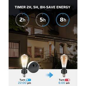 DEWENWILS Soquete do sensor de luz, soquete do sensor do crepúsculo ao amanhecer com temporizador de lâmpada - Sensor do amanhecer ao anoitecer – Equipado com sensor photosell, o soquete do sensor de lâmpadas é capaz de ligar/desligar do anoitecer ao amanhecer, transformando sua luminária padrão em uma luz automática do crepúsculo ao amanhecer. Não há necessidade de ligar e desligar fisicamente a luz - Temporizador de luz de até 8H – Três configurações para escolher – controlador de luz programável para ligar automaticamente sua luminária ao anoitecer e "desligar" após 2, 5 ou 8 horas ou ao amanhecer, ajuda a iluminar a noite enquanto evita o desperdício de energia - Fácil de instalar – Sem necessidade de fiação e programação, basta parafusar sua lâmpada no soquete de luz e aparafusar na luminária, certifique-se de que o sensor do amanhecer ao anoitecer esteja voltado para a fonte de luz natural, para uso interno ou externo sob abrigo. Nota: Não use com um acessório de vidro opaco ou fosco - Lâmpadas compatíveis – Adicionando 4 cm de altura, usadas com lâmpadas incandescentes, CFL, LED e halogêneas, lâmpada incandescente = 100W, lâmpada CFL/LED = 30W, perfeita para luzes de varanda, luzes de porta da frente, luzes de garagem etc. Não use soquete de sensor de luz com luminárias opacas ou de vidro forsted, capa de luz transparente recomendada - Proteja sua casa – modo aleatório para proteger sua casa. Quando você estiver longe de casa, suas luzes podem ser ligadas e desligadas automaticamente, impedindo invasores de forma eficaz, e você chegará em casa com as luzes da varanda acesas.