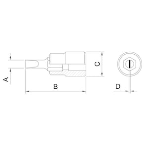 Os soquetes com ponta da Tramontina PRO são produzidos e testados para garantir total segurança e agilidade na colocação e retirada de parafusos com perfis internos. Escolha o tamanho e perfil ideal para a sua necessidade e mãos à obra. Orientações Soquete forjado em aço cromo vanádio e temperado. Ponteira em aço ferramenta S2.Soquete com acabamento cromado.Ponteira fosfatizada.DIN ISO 2380.Suporte plástico.Os soquetes são submetidos a testes rigorosos de torque e de dureza para atender a norma DIN 1711-1.Afrouxar e apertar parafusos com encaixe interno de fenda chata.As ferramentas são produzidas e testadas conforme normas específicas. Características Gerais EAN13 7891114031089 DUN14 17891114031086 NCM 8204.20.00 Peso Líquido 0,0900 kg. Peso Bruto 0,0900 kg. Metragem 0,000150 m³. Dimensões Embalagem (Compr. X Larg. X Alt.) 120x 50x 25 mm. Dimensões Produto (Compr. X Larg. X Alt.) 55x 24x 24 mm. Dimensão Extra A 10,0 mm. Dimensão Extra B 55,0 mm. Dimensão Extra C 24,0 mm. Dimensão Extra D 1,6 mm. Observações Use óculos, luvas e outros equipamentos de proteção individual (EPIs) de acordo com a tarefa a ser executada. Selecione o tamanho do soquete conforme a bitola do parafuso ou porca. Para operações com parafusadeiras pneumáticas ou elétricas, use soquetes de impacto. Inspecione os soquetes antes de sua utilização. Soquetes que apresentam trincas ou desgaste excessivo devem ser substituídos. Armazene em local limpo e seco.
