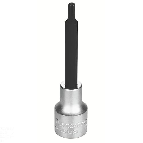 Os soquetes com ponta da Tramontina PRO são produzidos e testados para garantir total segurança e agilidade na colocação e retirada de parafusos com perfis internos. Escolha o tamanho e perfil ideal para a sua necessidade e mãos à obra. Orientações Soquete forjado em aço cromo vanádio e temperado. Ponteira em aço ferramenta S2.Soquete com acabamento cromado.Ponteira fosfatizada.Suporte plástico.Os soquetes são submetidos a testes rigorosos de torque e de dureza para atender a norma DIN 1711-1.Afrouxar e apertar parafusos com perfil sextavado interno.As ferramentas são produzidas e testadas conforme normas específicas. Características Gerais EAN13 7891114086676 DUN14 17891114086673 NCM 8204.20.00 Peso Líquido 0,1000 kg. Peso Bruto 0,1000 kg. Metragem 0,000240 m³. Dimensões Embalagem (Compr. X Larg. X Alt.) 160x 50x 30 mm. Dimensões Produto (Compr. X Larg. X Alt.) 100x 60x 60 mm. Dimensão Extra A 24,0 mm. Dimensão Extra B 100,0 mm. Dimensão Extra C 60,0 mm. Dimensão Extra D 15,5 mm. Dimensão Extra E 5,0 mm. Observações Use óculos, luvas e outros equipamentos de proteção individual (EPIs) de acordo com a tarefa a ser executada. Selecione o tamanho do soquete conforme a bitola do parafuso ou porca. Para operações com parafusadeiras pneumáticas ou elétricas, use soquetes de impacto. Inspecione os soquetes antes de sua utilização. Soquetes que apresentam trincas ou desgaste excessivo devem ser substituídos. Armazene em local limpo e seco.