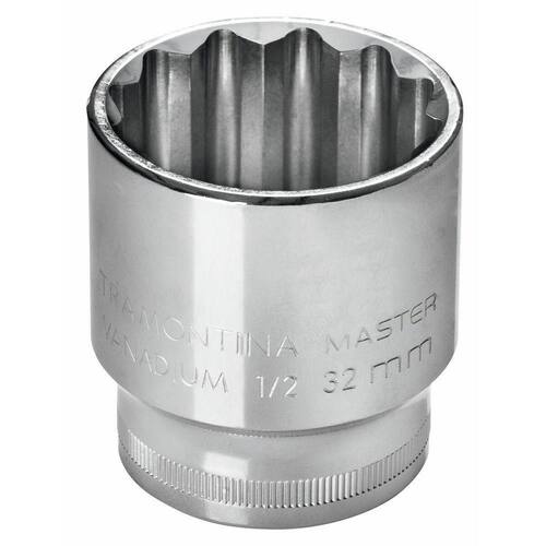 Soquete Estriado 9 mm encaixe 1/2 Tramontina em Aço Cromo Vanádio com Acabamento Cromado