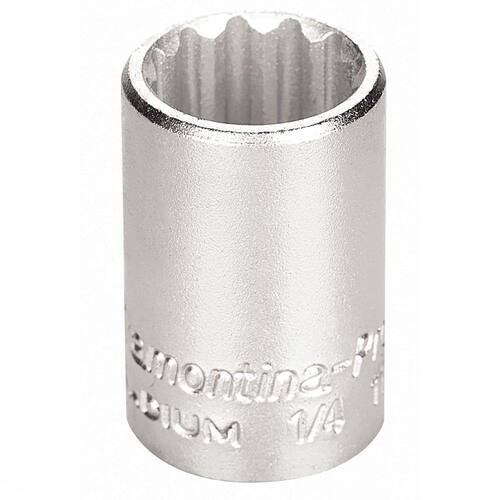 Os soquetes da Tramontina PRO são produzidos com sistema Hyper Drive que melhora o acoplamento do produto ao parafuso ou porca, reduzindo as tensões geradas no aperto e prolongando a sua vida útil. Escolha o tamanho e perfil ideal para a sua necessidade e mãos à obra. Orientações Soquete forjado em aço cromo vanádio e temperado. Acabamento cromado.Perfil Hyper Drive (de cantos arredondados). DIN 3124.Suporte plástico.Um grande avanço na produção dos soquetes é a introdução do conceito "Hyper Drive". Este novo perfil melhora o acoplamento do soquete na porca ou parafuso, reduzindo as tensões geradas no aperto, prolongando a vida do soquete e do elemento de fixação.Os soquetes são submetidos a testes rigorosos de torque e de dureza para atender a norma DIN 1711-1.Afrouxar e apertar parafusos e porcas sextavados.As ferramentas são produzidas e testadas conforme normas específicas. Características Gerais EAN13 7891114132038 DUN14 17891114132035 NCM 8204.20.00 Peso Líquido 0,0300 kg. Peso Bruto 0,0300 kg. Metragem 0,000119 m³. Dimensões Embalagem (Compr. X Larg. X Alt.) 85x 70x 20 mm. Dimensões Produto (Compr. X Larg. X Alt.) 25x 14x 14 mm. Dimensão Extra A 14,0 mm. Dimensão Extra B 14,0 mm. Dimensão Extra C 25,0 mm. Dimensão Extra D 10,0 mm. Observações Use óculos, luvas e outros equipamentos de proteção individual (EPIs) de acordo com a tarefa a ser executada. Selecione o tamanho do soquete conforme a bitola do parafuso ou porca. Para operações com parafusadeiras pneumáticas ou elétricas, use soquetes de impacto. Inspecione os soquetes antes de sua utilização. Soquetes que apresentam trincas ou desgaste excessivo devem ser substituídos. - Armazene em local limpo e seco.