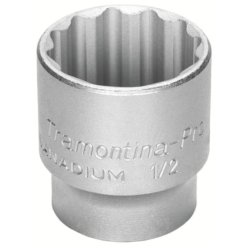 Os soquetes da Tramontina PRO são produzidos com sistema Hyper Drive que melhora o acoplamento do produto ao parafuso ou porca, reduzindo as tensões geradas no aperto e prolongando a sua vida útil. Escolha o tamanho e perfil ideal para a sua necessidade e mãos à obra. Orientações Um grande avanço na produção dos soquetes é a introdução do conceito "Hyper Drive". Este novo perfil melhora o acoplamento do soquete na porca ou parafuso, reduzindo as tensões geradas no aperto, prolongando a vida do soquete e do elemento de fixação.Soquete forjado em aço cromo vanádio e temperado. Acabamento cromado. DIN 3124. Os soquetes são submetidos a testes rigorosos de torque e de dureza para atender a norma DIN 1711-1.Afrouxar e apertar parafusos e porcas sextavados.As ferramentas são produzidas e testadas conforme normas específicas. Características Gerais EAN13 7891114026337 DUN14 17891114026334 NCM 8204.20.00 Peso Líquido 0,1900 kg. Peso Bruto 0,1900 kg. Metragem 0,000200 m³. Dimensões Embalagem (Compr. X Larg. X Alt.) 100x 50x 40 mm. Dimensões Produto (Compr. X Larg. X Alt.) 45x 38x 38 mm. Dimensão Extra A 38,0 mm. Dimensão Extra B 45,0 mm. Dimensão Extra C 26,0 mm. Dimensão Extra D 28,0 mm. Observações Use óculos, luvas e outros equipamentos de proteção individual (EPIs) de acordo com a tarefa a ser executada. Selecione o tamanho do soquete conforme a bitola do parafuso ou porca. Para operações com parafusadeiras pneumáticas ou elétricas, use soquetes de impacto. Inspecione os soquetes antes de sua utilização. Soquetes que apresentam trincas ou desgaste excessivo devem ser substituídos. Armazene em local limpo e seco.