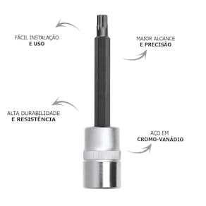 Pergunta: Qual o comprimento deste soquete? Resposta: O comprimento é de 100mm, ideal para alcançar locais de difícil acesso.
