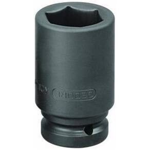 Aço-liga de alta resistência mecânica. Acabamento escurecido, bitola: 3.1/8 possui acabamento fosfatizado. Soquete extrarresistente, para trabalhar com máquinas de impacto, com encaixe quadrado externo 25,4 mm 1 , conforme DIN 3121 - G 25, ISO 1174. Indicado para parafusos e porcas com perfil de encaixe sextavado externo. Possui alojamento para utilização de pino e anel de segurança, a serem adquiridos à parte, de acordo com o modelo.