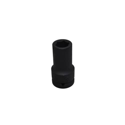 Aço-liga de alta resistência mecânica. Acabamento escurecido. Soquete extrarresistente, para trabalhar com máquinas pneumáticas e elétricas, com encaixe a 19,05 mm 3/4 , conforme DIN 3121 - G 20, ISO 1174. Apresenta alojamento para pino e anel de segurança.