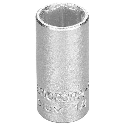 Soquete Sextavado 1/4" - Milímetros Tramontina Pro Tramontina Soquete Sextavado 1/4 - Milímetros Tramontina Pro Tramontina - Os soquetes da Tramontina PRO são produzidos com sistema Hyper Drive que melhora o acoplamento do produto ao parafuso ou porca, reduzindo as tensões geradas no aperto e prolongando a sua vida útil. Escolha o tamanho e perfil ideal para a sua necessidade e mãos à obra.OrientaçõesSoquete forjado em aço cromo vanádio e temperado. Acabamento cromado. Perfil Hyper Drive (de cantos arredondados). DIN 3124. Suporte plástico. Um grande avanço na produção dos soquetes é a introdução do conceito Hyper Drive. Este novo perfil melhora o acoplamento do soquete na porca ou parafuso, reduzindo as tensões geradas no aperto, prolongando a vida do soquete e do elemento de fixação. Os soquetes são submetidos a testes rigorosos de torque e de dureza para atender a norma DIN 1711-1. Afrouxar e apertar parafusos e porcas sextavados. As ferramentas são produzidas e testadas conforme normas específicas.ObservaçõesUse óculos, luvas e outros equipamentos de proteção individual (EPIs) de acordo com a tarefa a ser executada. Selecione o tamanho do soquete conforme a bitola do parafuso ou porca. Para operações com parafusadeiras pneumáticas ou elétricas, use soquetes de impacto. Inspecione os soquetes antes de sua utilização. Soquetes que apresentam trincas ou desgaste excessivo devem ser substituídos. Armazene em local limpo e seco.Características GeraisEAN137891114088120DUN1417891114088127NCM8204.20.00Peso Líquido0,0250 kg.Peso Bruto0,0250 kg.Metragem0,000119 m.Dimensões Embalagem (Compr. X Larg. X Alt.)85x 70x 20 mm.Dimensões Produto (Compr. X Larg. X Alt.)25x 12x 12 mm.Dimensão Extra A12,0 mm.Dimensão Extra B12,0 mm.Dimensão Extra C25,0 mm.Dimensão Extra D8,0 mm. Características Gerais do Produto: Garantia: - 1 Ano