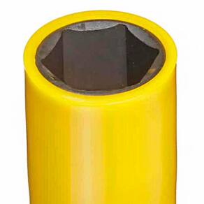 - Características: Encaixe Quadrado: 1/2". Material: Fabricado em aço cromo-molibdênio, garantindo alta durabilidade e resistência ao impacto. Acabamento: Superfície fosfatada, que protege contra corrosão. Proteção de Plástico: Evita danos às rodas de liga leve durante o uso. Codificação por Cores: Facilita a identificação do soquete correto (amarelo para 19 mm). Indicado para trabalhos com rodas de liga leve, preservando o acabamento das peças. Resistente a condições de uso intenso em oficinas mecânicas e industriais. Embalagem prática e apropriada para autosserviço.
