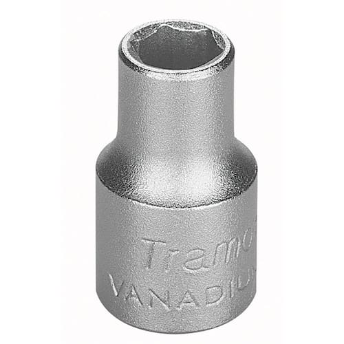 Os soquetes da Tramontina PRO são produzidos com sistema Hyper Drive que melhora o acoplamento do produto ao parafuso ou porca, reduzindo as tensões geradas no aperto e prolongando a sua vida útil. Escolha o tamanho e perfil ideal para a sua necessidade e mãos à obra. Orientações Soquete forjado em aço cromo vanádio e temperado. Acabamento cromado.Perfil Hyper Drive (de cantos arredondados). DIN 3124.Suporte plástico.Um grande avanço na produção dos soquetes é a introdução do conceito "Hyper Drive". Este novo perfil melhora o acoplamento do soquete na porca ou parafuso, reduzindo as tensões geradas no aperto, prolongando a vida do soquete e do elemento de fixação.Os soquetes são submetidos a testes rigorosos de torque e de dureza para atender a norma DIN 1711-1.Afrouxar e apertar parafusos e porcas sextavados.As ferramentas são produzidas e testadas conforme normas específicas. Observações Use óculos, luvas e outros equipamentos de proteção individual (EPIs) de acordo com a tarefa a ser executada. Selecione o tamanho do soquete conforme a bitola do parafuso ou porca. Para operações com parafusadeiras pneumáticas ou elétricas, use soquetes de impacto. Inspecione os soquetes antes de sua utilização. Soquetes que apresentam trincas ou desgaste excessivo devem ser substituídos. Armazene em local limpo e seco. Características Gerais EAN13 7891114025507 DUN14 17891114025504 NCM 8204.20.00 Peso Líquido 0,0450 kg. Peso Bruto 0,0450 kg. Metragem 0,000100 m³. Dimensões Embalagem (Compr. X Larg. X Alt.) 100x 50x 20 mm. Dimensões Produto (Compr. X Larg. X Alt.) 30x 15x 15 mm. Dimensão Extra A 14,5 mm. Dimensão Extra B 30,0 mm. Dimensão Extra C 17,0 mm. Dimensão Extra D 10,0 mm.