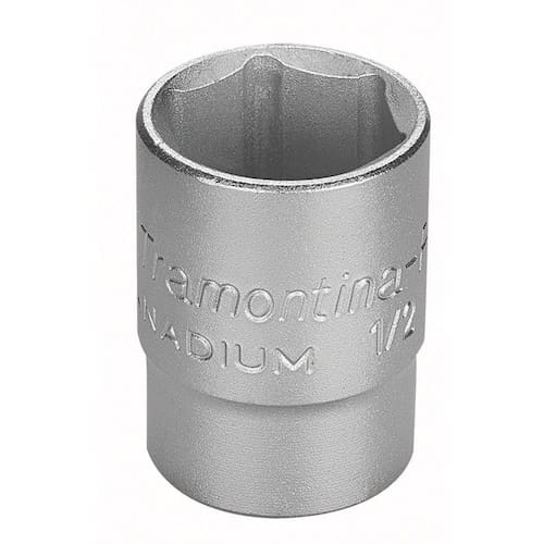 Soquete Sextavado Em Aço Cromo Vanádio 19 Mm - Encaixe 1/2" Tramontina Pro Tramontina Soquete Sextavado em Aço Cromo Vanádio 19 mm - Encaixe 1/2 Tramontina PRO Tramontina - Os soquetes da Tramontina PRO são produzidos com sistema Hyper Drive que melhora o acoplamento do produto ao parafuso ou porca, reduzindo as tensões geradas no aperto e prolongando a sua vida útil. Escolha o tamanho e perfil ideal para a sua necessidade e mãos à obra.OrientaçõesUm grande avanço na produção dos soquetes é a introdução do conceito Hyper Drive. Este novo perfil melhora o acoplamento do soquete na porca ou parafuso, reduzindo as tensões geradas no aperto, prolongando a vida do soquete e do elemento de fixação. Soquete forjado em aço cromo vanádio e temperado. Acabamento cromado. DIN 3124. Os soquetes são submetidos a testes rigorosos de torque e de dureza para atender a norma DIN 1711-1. Afrouxar e apertar parafusos e porcas sextavados. As ferramentas são produzidas e testadas conforme normas específicas. ObservaçõesUse óculos, luvas e outros equipamentos de proteção individual (EPIs) de acordo com a tarefa a ser executada. Selecione o tamanho do soquete conforme a bitola do parafuso ou porca. Para operações com parafusadeiras pneumáticas ou elétricas, use soquetes de impacto. Inspecione os soquetes antes de sua utilização. Soquetes que apresentam trincas ou desgaste excessivo devem ser substituídos. - Armazene em local limpo e seco.Características GeraisEAN137891114025897DUN1417891114025894NCM8204.20.00Peso Líquido0,0900 kg.Peso Bruto0,0900 kg.Metragem0,000150 m.Dimensões Embalagem (Compr. X Larg. X Alt.)100x 50x 30 mm.Dimensões Produto (Compr. X Larg. X Alt.)38x 26x 26 mm.Dimensão Extra A26,0 mm.Dimensão Extra B38,0 mm.Dimensão Extra C24,0 mm.Dimensão Extra D19,0 mm. Características Gerais do Produto: Garantia: - 1 Ano