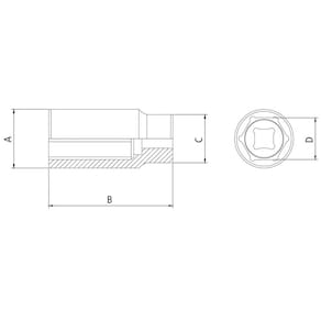 Os soquetes da Tramontina PRO são produzidos com sistema Hyper Drive que melhora o acoplamento do produto ao parafuso ou porca, reduzindo as tensões geradas no aperto e prolongando a sua vida útil. Escolha o tamanho e perfil ideal para a sua necessidade e mãos à obra. Orientações Um grande avanço na produção dos soquetes é a introdução do conceito "Hyper Drive". Este novo perfil melhora o acoplamento do soquete na porca ou parafuso, reduzindo as tensões geradas no aperto, prolongando a vida do soquete e do elemento de fixação.Soquete forjado em aço cromo vanádio e temperado. Acabamento cromado. DIN 3124. Os soquetes são submetidos a testes rigorosos de torque e de dureza para atender a norma DIN 1711-1.Afrouxar e apertar parafusos e porcas sextavados.As ferramentas são produzidas e testadas conforme normas específicas. Observações Use óculos, luvas e outros equipamentos de proteção individual (EPIs) de acordo com a tarefa a ser executada. Selecione o tamanho do soquete conforme a bitola do parafuso ou porca. Para operações com parafusadeiras pneumáticas ou elétricas, use soquetes de impacto. Inspecione os soquetes antes de sua utilização. Soquetes que apresentam trincas ou desgaste excessivo devem ser substituídos. - Armazene em local limpo e seco. Características Gerais EAN13 7891114133189 DUN14 17891114133186 NCM 8204.20.00 Peso Líquido 0,1250 kg. Peso Bruto 0,1250 kg. Metragem 0,000169 m³. Dimensões Embalagem (Compr. X Larg. X Alt.) 135x 50x 25 mm. Dimensões Produto (Compr. X Larg. X Alt.) 76x 22x 22 mm. Dimensão Extra A 21,6 mm. Dimensão Extra B 76,0 mm. Dimensão Extra C 21,6 mm. Dimensão Extra D 15,0 mm.