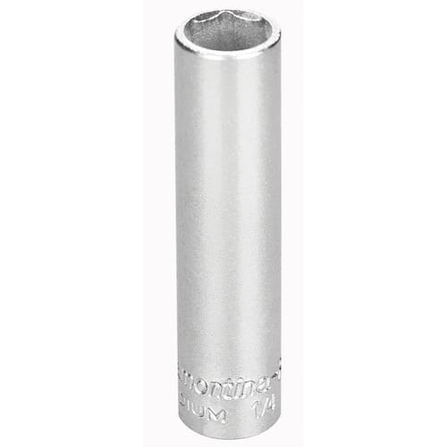 Soquete Sextavado Longo Em Aço Cromo Vanádio 8 Mm - Encaixe 1/4" Tramontina Pro Tramontina Soquete Sextavado Longo em Aço Cromo Vanádio 8 mm - Encaixe 1/4 Tramontina PRO Tramontina - Os soquetes da Tramontina PRO são produzidos com sistema Hyper Drive que melhora o acoplamento do produto ao parafuso ou porca, reduzindo as tensões geradas no aperto e prolongando a sua vida útil. Escolha o tamanho e perfil ideal para a sua necessidade e mãos à obra.OrientaçõesSoquete forjado em aço cromo vanádio e temperado. Acabamento cromado. Perfil Hyper Drive (de cantos arredondados). DIN 3124. Suporte plástico. Um grande avanço na produção dos soquetes é a introdução do conceito Hyper Drive. Este novo perfil melhora o acoplamento do soquete na porca ou parafuso, reduzindo as tensões geradas no aperto, prolongando a vida do soquete e do elemento de fixação. Os soquetes são submetidos a testes rigorosos de torque e de dureza para atender a norma DIN 1711-1. Afrouxar e apertar parafusos e porcas sextavados. As ferramentas são produzidas e testadas conforme normas específicas.ObservaçõesUse óculos, luvas e outros equipamentos de proteção individual (EPIs) de acordo com a tarefa a ser executada. Selecione o tamanho do soquete conforme a bitola do parafuso ou porca. Para operações com parafusadeiras pneumáticas ou elétricas, use soquetes de impacto. Inspecione os soquetes antes de sua utilização. Soquetes que apresentam trincas ou desgaste excessivo devem ser substituídos. - Armazene em local limpo e seco.Características GeraisEAN137891114131802DUN1417891114131809NCM8204.20.00Peso Líquido0,0300 kg.Peso Bruto0,0300 kg.Metragem0,000119 m.Dimensões Embalagem (Compr. X Larg. X Alt.)85x 70x 20 mm.Dimensões Produto (Compr. X Larg. X Alt.)50x 12x 12 mm.Dimensão Extra A11,9 mm.Dimensão Extra B11,9 mm.Dimensão Extra C49,5 mm.Dimensão Extra D8,0 mm. Características Gerais do Produto: Garantia: - 1 Ano