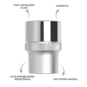 P: Qual a durabilidade deste soquete? R: Devido ao material de aço cromo-vanádio, este soquete possui alta resistência e durabilidade, garantindo uma longa vida útil.