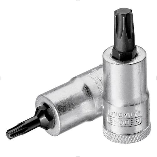O Soquete Torx da Gedore foi desenvolvido para apertar e afrouxar parafusos. Fabricado em Aço Gedore Vanádio. Conta com acabamento zincado branco/niquelado e cromado com ponteira escurecida. Perfil Hexalobular. Encaixe 3/8. Dimensão nominal: 5,52 mm. Medida da Rosca do Parafuso: M6 - M7. L1: 49 mm L2: 17 mm D: 17,5 mm Peso: 0,051 kg Modelo: ITX30-T30 Referência do Fornecedor: 024.325 Marca: GEDORE.