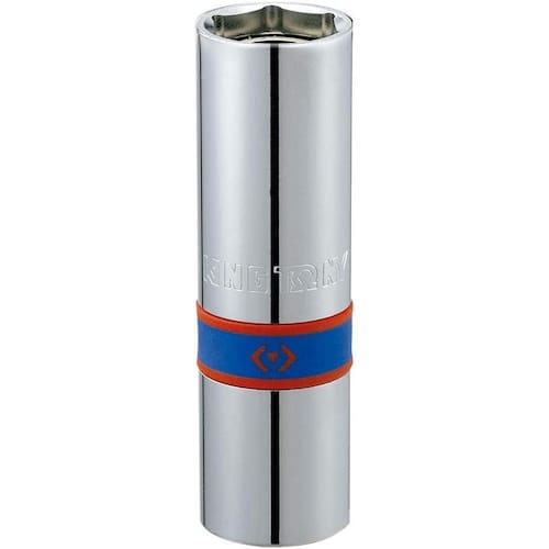 Soquete de vela sextavado magnetico 16mm x 1/2 - 466516 - king tony Chave de vela, soquete longo Medida: 16mm Encaixe: 1/2 Possui imã interno o que facilita a pegada, não deixando a vela escapar Linha profissional em aço cromo vanádio, cromado e polido