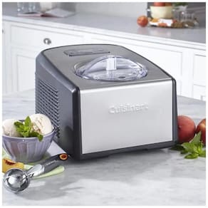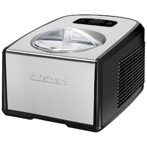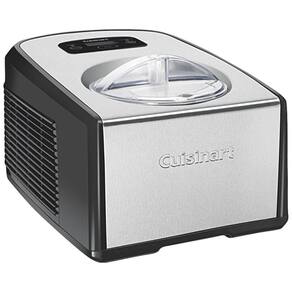 Sorveteira automática Cuisinart ICE 100 com compressor, capacidade de 1,2 litros, duas pás de mistura, temporizador de 60 minutos com controles touchpad, display LCD, ciclo Keep Cool de 10 minutos e componentes livres de BPA.Bowl de congelamento