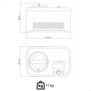 CARACTERÍSTICAS - Abaixo folheto de receitas para download. - Tigela de sorvete de 1 litro removível. - Tampa transparente com abertura grande para acrescentar ingredientes. - Pá removível. - Compressor com autorrefrigeração. - Materiais sem BPA. - Exterior de aço inox. - Pré-resfriamento. - Mantém gelado por até 3 horas. - Conversão de temperatura. - LCD com retroiluminação, monitor para temperatura e tempo. - 12 configurações de congelamento. - Funcionamento automático e manual. - A primeira sorveteira que detecta automaticamente o congelamento da mistura com base na sua seleção e a mantém pronta até a hora de servir. - Tensão: 220V - Frequência: 60 Hz - Potência: 170W - Este aparelho é recomendado apenas ao uso doméstico.