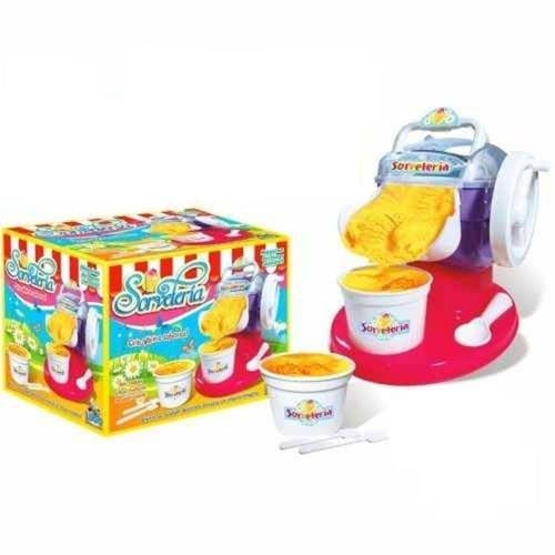 Sorveteria Lugo Faz sorvete verdade, é uma linda maquininha para brincar de fazer sorvete e estimula a coordenação motora, a criatividade da criança e diverte com toda a família. Contem: 01 maquina de sorvete, 02 potinhos plásticos, 01 colher de sorvete, 02 colheres pequenas, 01 manual de instrução e receitinhas. Ela vem com Manual e receita ensinado a fazer sorvete. Fabricante, Lugo Garantia de Fabrica contra defeito de fabricação Validade indeterminada. Selo Immetro CEBRI/SARONN 0002318 Ean: 7898105010399