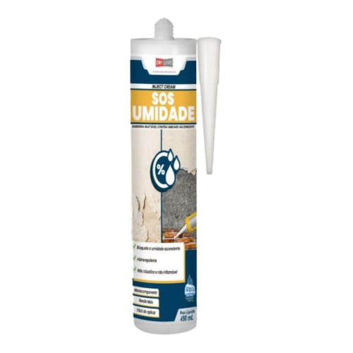 Neste anúncio você compra:- 1 bisnaga de 490ml 250g na cor bege do sos umidade.O sos umidade é um creme base água e à base de silano que após injetado penetra nos poros dos minerais utilizados na construção, siliconizando esses minerais e formando uma barreira química bloqueando a umidade ascendente capilar, sem alterar a passagem de água na forma de vapor, preservando a respirabilidade do sistema. É aplicado diretamente em furos feitos no rejunte da argamassa, formando uma barreira hidrorrepelente, prevenindo o aumento da umidade permanentemente.O SOS UMIDADE é um creme base água e à base de silano BenefíciosPrevine a umidade capilar, livre de solventes, não altera a respirabilidade do sistema, proteção hidrofóbica de longa duração, penetra profundamente no substrato. Produto pronto para o uso, não é necessário diluir. Bloqueia a umidade ascendente. Aumenta a durabilidade e a estética de fachadas prevenindo de danos ocasionados pela umidade. Impermeabilização de paredes de alvenaria, tufo e concreto em área sujeita à umidade ascendente.Preparação da superfícieEliminar todo pó, manchas de gordura ou graxa, mofo, partes soltas e deixar o substrato livre de qualquer impregnação que possa prejudicar a aderência do produto. Remover todo o reboco da área úmida e 50cm acima da umidade conforme imagem abaixo, aproximadamente 1,50m do piso, é aconselhável retirar todo o reboco. Caso tenha falhas na junta, aplicar argamassa para preencher, pois essas falhas podem prejudicar o alastramento do produto.Distância e profundidade dos furosCom o auxílio de uma furadeira, realizar o furo com a broca de 12,50mm a 13mm, espaçar os furos a cada 10cm de distância um do outro de forma que a distribuição fique uniforme, em juntas menores que 1cm, furar com broca de 7mm com distância de 5cm de um furo entre outro, a furação deve ser realizada horizontalmente, caso a junta não estiver e linha reta, aplicar de forma que não ultrapasse 30 de um furo para o outro deixando o mais linear possível, os furos devem ter diâmetro de 12 a 20mm, a perfuração deve ser 1cm aproximadamente menor que a largura da parede e 12cm de altura acima do pavimento, solo ou piso. Após a furação retirar todo o pó do furo com ar comprimido.Aplicação do produtoCom a bisnaga cortada, encaixar uma mangueira de 12mm de diâmetro externo e 10mm de diâmetro interno para juntas acima de 2cm. Em juntas abaixo de 1cm, utilizar mangueira de 6mm de diâmetro externo e 5mm de diâmetro interno. Cortar a mangueira do tamanho da profundidade desejada do furo, encaixar no bico da bisnaga e empurrar o mais profundo possível e preencher de maneira uniforme, após preencher o furo, quando faltar aproximadamente 1cm retirar a bisnaga lentamente e tapar o furo com argamassa ou massa tapa tudo da drylevis. O diâmetro e a distância entre os furos podem variar de acordo com a absorção do material e tamanho da junta. Aguardar 7 dias para aplicar o reboco para facilitar a evaporação da umidade remanescente no substrato. Devido ao substrato ter bastante umidade e alta concentração de sais, adicionar o sos concreto no traço do reboco para garantir a impermeabilização do sistema. RendimentoAproximadamente 2,5m a 3,5m por embalagem de 250g/490ml, considerando o furo com 10cm de profundidade e o diâmetro de 12mm.LimitaçõesEste produto não deve ser aplicado em superfícies esmaltadas, enceradas, vitrificadas ou não porosas. Não deve ser aplicado em locais que liberam óleo, plastificantes ou solventes gaxetas de vedação de borracha natural ou parcialmente vulcanizadas ou fitas; em superfícies cuja temperatura esteja abaixo de 10ºc ou acima de 37ºc. Não aplicar sobre superfícies desmoldantes exemplos: tintas, óleos, manta asfáltica, manta acrílica, superfícies lisas sem aderência, resinas em geral e outros impermeabilizantes. Não aplicar em tijolos vazados. Não aplicar em áreas expostas a chuvas intensas.Quím. Responsável: Kelly Cristina da Silva AlmeidaCRQ 4 Região 044100961