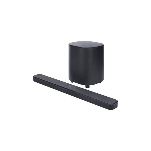 O sistema 2.1 canais oferece maior clareza nos diálogos e melhor separação de áudio. O subwoofer wireless reforça as frequências graves sem necessidade de cabos, facilitando a instalação e organização do ambiente.