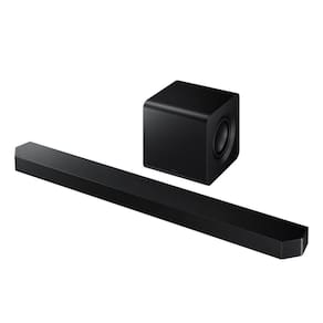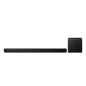 A Soundbar Samsung Serie Q 2025, 5.1.2 Canais, Subwoofer - HW-Q800F eleva o entretenimento da sua casa com um sistema potente de 5.1.2 canais e tecnologia Dolby Atmos sem fio, proporcionando um som cinematografico imersivo com alto-falantes fisicos superiores e laterais que preenchem todo o ambiente.