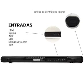Soundbar Tomate Caixa De Som 280W Woofer 6,5 Preto USB Kit Caixa de Som Sound Bar Bluetooth MTS-2041 280W - Som Imersivo para Sua Casa Transforme sua sala em um verdadeiro cinema com a Sound Bar MTS-2041 da Tomate. Com potência de 280W e configuração de áudio 5.0, esse sistema de som proporciona qualidade sonora incrível para filmes, músicas e jogos. Conectividade Bluetooth 5.3, HDMI ARC , Óptico, USB e AUX garantem compatibilidade com diversos dispositivos. A Sound Bar MTS-2041 é ideal para quem busca potência, qualidade sonora e conectividade em um único produto, elevando a experiência de áudio para outro nível. Destaques do Produto: Potência de 280W RMS - Som potente e de alta fidelidade Configuração 5.0 multicanal - Áudio imersivo para filmes e músicas Bluetooth 5.3 + EDR - Conexão sem fio estável e eficiente Conexões versáteis - HDMI ARC , Óptico, USB, AUX 3,5 mm Alto-falantes de alta performance - 5 drivers de 2,25 + 1 woofer de 6,5 Design elegante e compacto - Ocupa pouco espaço e valoriza seu ambiente Aparelho bivolt - Compatível com qualquer tomada Controle remoto incluso - Mais comodidade para ajustar o som Design de Televisões de 40 - 65 polegadas Canais de áudio: 5.1 Nível sonora: 105dB Alto-falante: 6x o alcance Especificações Técnicas: Potência RMS: 280W Configuração de canais: 5.0 Drivers: 5 x 2,25 faixa completa + 1 x 6,5 woofer Conectividade: Bluetooth 5.3, HDMI ARC , Óptico, USB, AUX Alcance do Bluetooth: 10m Fonte de alimentação: AC 100-240V bivolt Marca/fabricante: Tomate Modelo: MTS-2041 Itens Inclusos: 1 Sound Bar MTS-2041 1 Controle remoto 1 Cabo de alimentação 1 Cabo Aux-in 1 Cabo de conexão entre os alto-falantes 1 Kit de montagem na parede 1 Guia de início rápido Homologação Anatel: 112572013224 Marca: Não Informado Ean: 7895688667156