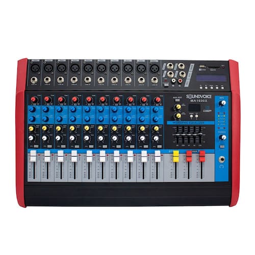Muito importante para a alimentação de caixas de som passivas, a mesas de som amplificada, da Soundvoice, é um dos dispositivos mais essenciais para um técnico de som que atua em eventos, festas, shows e igrejas. Pois é nesse equipamento que todos os áudios são processados, equalizados e se transformam em um som limpo e agradável.