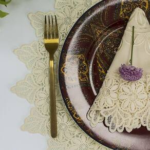 A coleção L'Essence da Casa Argivai possui trilhos de mesa, lugares americanos, sousplats e toalhas de mesa com uma variedade de tecidos, rendas, cores e bordados que enobrecem a decoração da sua mesa.
