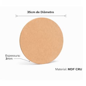 Características do produto: - Material: MDF CRU - Diâmetro: 35 cm - Espessura: 3 mm - Formato: Redondo - Cor: Natural do MDF