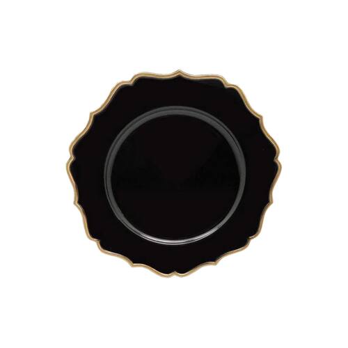 Sousplat De Chá Em Polipropileno 25cm Rafimex Preto e Dourado -