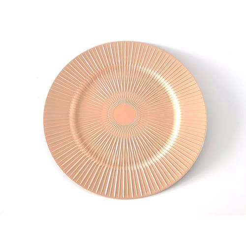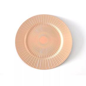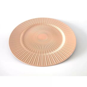 Sua mesa posta mais bonita e elegante com oSousplat de Plástico Le Plisse Cobre! Mais do que peças decorativas, os Sousplats, pratos maiores do que os de jantar, têm como função de não deixar espaço vazio na mesa entre a entrada e o prato principal. Só são retirados quando se serve a sobremesa. O plástico conversa com qualquer louça, porcelanas finas e complementos, uma junção fascinante para quem busca elegância na hora de compor e decorar a mesa. A linha Plisse da Le Biscuit conta com uma textura exclusiva, fica impossível não se apaixonar! Uma ótima opção para enaltecer decorações de forma moderna, dando um toque natural e fino, além de transmitir cores escuras tornarem o ambiente mais tranquilo e aconchegante.