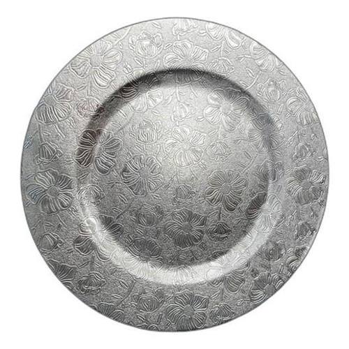 Sousplat Prateado Plástico Relevo Design Floral 33 X 33 Nome do desenho: Floral Cor: Prateado Sousplat Prateado Plástico Desing Floral Relevo 33 x 33