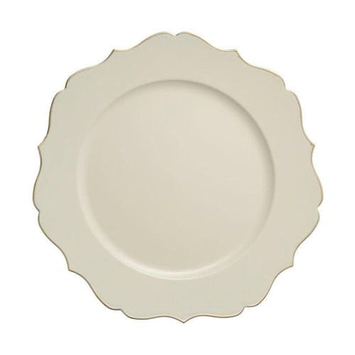 O Sousplat Provence 33 cm, compõe a decoração da sua mesa com um toque de elegância. O Sousplat é confeccionado em plástico, ele emoldura o seu prato, protege a toalha de mesa ou jogo americano e também servem para marcar os lugares de cada convidado