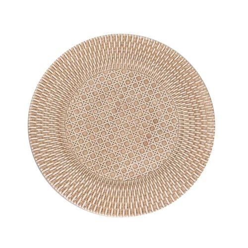 Sousplat Redondo de Plástico com Textura de Rattan Bege 33cm Wolff
