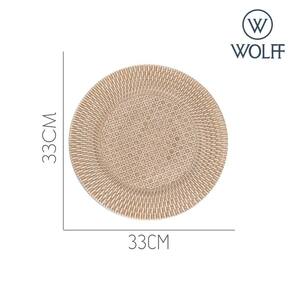 O Sousplat de Plástico com Textura de Rattan Bege da Wolff é uma adição elegante e prática para a sua mesa. Com um diâmetro de 33cm, este sousplat apresenta uma textura de rattan em tom bege, proporcionando um toque de sofisticação e estilo à sua configuração de mesa.