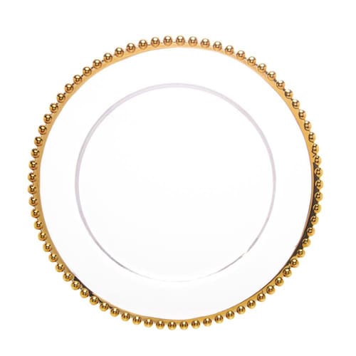 O sousplats de cristal transparente com borda dourada PEARL WOLFF possui lapidação em bolinhas na borda, inspirada na beleza e no brilho único das pérolas. É ideal para proporcionar um ambiente com mais glamour e sofisticação a mesa, além de oferecer proteção contra resíduos de alimentos que possam cair no colo durante as refeições. WOLFF, há mais de um século servindo bem.