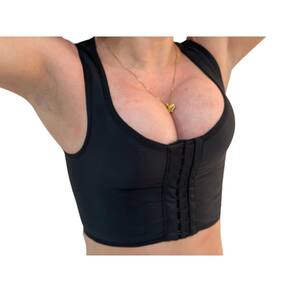 Malha em poliamida e elastano recomendado para pós-cirúrgico.