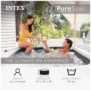O spa com banheira de hidromassagem quadrada, portátil e inflável para 4 pessoas permite que você relaxe com estilo com o toque de um botão.