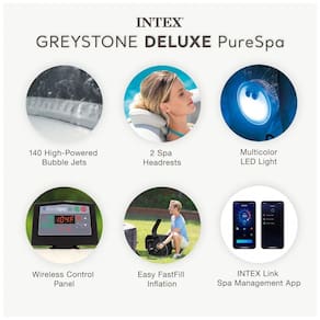 Painel de controle removível, sem fio e fácil de usar Aplicativo Intex Link Spa Management para uso remoto a partir do seu dispositivo inteligente.
