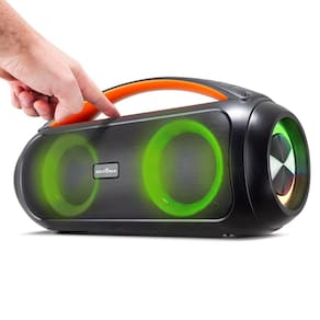 O Speaker conta com entradas USB e P2 auxíliar para você reproduzir seus arquivos de áudio favoritos. Além disso, a função TWS possibilita a sincronia perfeita que amplifica o seu som e a função Flash Lights, um sistema de luzes que oferece um aspecto muito mais festivo para a reprodução das suas músicas.