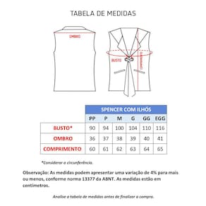 O SPENCER é uma peça clássica para compor a vestimenta executiva.Tendência que nunca sai da moda, o colete social é a certeza de elegância.O Fechamento fontral com lenço, dá um toque diferenciado ao visual, ideal para quem quer valorizar sua imagem pessoal.Possui dois bolsos embutidos na frente. Tecido de Alta resistência Durabilidade Fácil lavagem e secagem Baixo amarrotamentoComposição: Tecido Oxford.Produto Nacional vendido pela Loja de Confecções Ipê Roxo.Produto direto da fábrica e produzido com rigoroso controle de qualidade.Confira suas medidas na tabela.Para ajudar na sua escolha de tamanho: A Modelo Ana, veste tamanho PP, tem 1,63 de altura e pesa 51kg.Referência: 463AD2