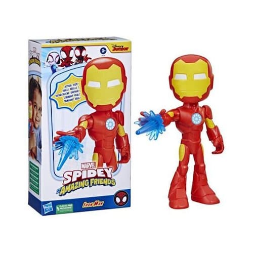 Homem de Ferro ao resgate! Esta figura de ação superdimensionada do Homem de Ferro Spidey e seus amigos incríveis é feita para grandes imaginações Esta figura de ação de super-herói articulável, amigável e pronta para jogar! As crianças podem prender o acessório Repulsor Ray incluído no pulso da figura e mover a cabeça e os braços da figura do Homem de Ferro em divertidas poses de ação para recriar cenas favoritas do programa de animação pré-escolar da Marvel no Disney Junior