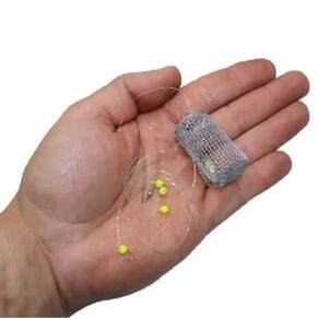 Chicote 4 Anzóis Com Cestinho Cevador Para Pesca Lambari é um produto desenvolvido para a pesca de lambaris, saicanga e outros peixes de pequeno porte. É extremamente fácil de usar e muito eficiente. Basta apenas colocar a ceva dentro do cestinho, lançar na água e após afundar, o material que estiver dentro do recipiente irá flutuar pela água entre os anzóis, facilitando a captura dos peixes. Características: - Equipado com 4 anzóis, 4 miçangas e 1 girador; - Feito com linha de nylon resistente; - Inclui 1 cesto cevador em metal. Um spinhel com cesto ou espinhel com cestinho é um tipo de equipamento de pesca popularmente para a captura de peixes pequenos, como lambaris e tilápias. Características: Espinhel: Refere-se a um sistema com vários anzóis fixados a uma linha principal. Cesto: É uma pequena cestinha acoplada à estrutura, Utilizado para colocar ceva iscas esmagadas, farelos de pão ou quirela de milho e atrair os peixes para perto dos anzóis. Anzóis: Geralmente, possui vários anzóis pequenos, o que aumenta a chance de pegar mais de um peixe por arremesso. Atração: Em alguns modelos, são adicionadas miçangas brilhantes perto dos anzóis para aumentar ainda mais a atratividade. Esse tipo de equipamento é prático e eficiente para pescarias de pequeno porte em rios, lagos e pesqueiros. Tamanho do cesto Altura 3,5cm Largura 2,2cm Marca: Não Informado Ean: 7892812102491