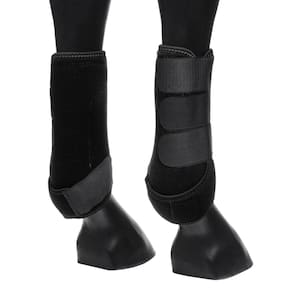 Par de Combination Boots Rodeo West, fabricados em neoprene com fechamento em tira autocolante e reforço em vinil, é composto de boleteira em conjunto com o cloche formando apenas uma peça dando maior proteção para o animal. Utilizados nas patas dianteiras do animal.