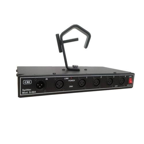 SPLITTER 01 ENTRADA 04 SAÍDAS O Splitter converte sinais digitais DMX512 em sinais de saida DMX512 idênticas de acordo com a quantidade de saídas do modelo adquirido. Com o uso do Splitter teremos cópias exatas do sinal de entrada. Mantendo o sinal estável e isolando-o. Os circuitos de entrada e saída são totalmente isolados exceto a entrada de sinal e a saída LINK , com fontes de alimentação separadas, internamente o sinal é distribuido por meio de opto-isoladores. Faz-se necessário o uso do Splitter quando temos uma instalação onde encontramos qualquer dos requisitos a seguir: Um elevado numero de equipamentos DMX em uma mesma linha O numero recomendado de equipamentos em uma linha DMX é 32 . Grande distância entre equipamentos ou grupo de equipamentos DMX a máxima distancia recomendada para uma linha DMX é 50 Mts . Necessidade de isolar o controlador mesa dos equipamentos e isolar os equipamentos entre si. Separação de um sinal DMX, quando teremos então uma linha específica para cada tipo de equipamento. Dimensões: Altura: 4,5 cm Largura: 30 cm Profundidade: 14 cm Peso: 02 kg