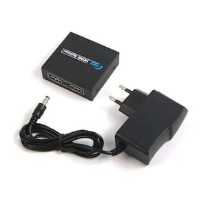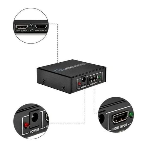 reproduz a mesma imagem em até 2 telas diferentes. Ex. Caso voce tenha um de tv na sala, podera enviar um sinal para a tv da sala e uma tv que esteja na sala de estar. As 2 exibirao a mesma imagem. Atenção: o aparelho que estará transmitindo o sinal hdmi, podera ficar a uma distancia maxima de 5 metros do splitter e os aparelhos , a uma distancia maxima de 10 metros do splitter. Mantendo a excelente qualidade de audio e video 1080p full hd. Possui fonte de 5v e suporta 3d. Especificações: