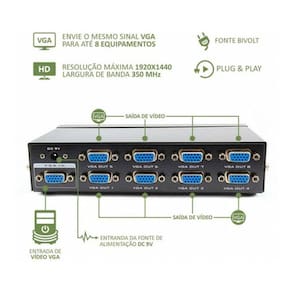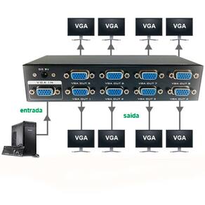 Splitter De Video Vga 1 entrada 8 saidas Com Fonte