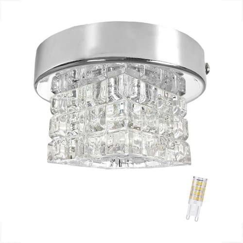 Spot Cristal Plafon Sobrepor Prateado Brilhoso Bet45 + Led
