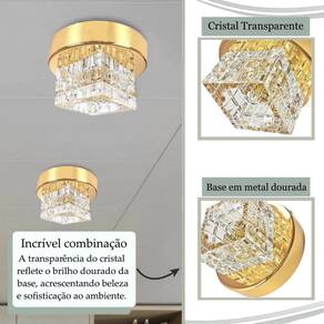Spot Cristal Sobrepor Plafon Dourado Base Metal Sala Bet44