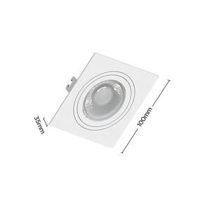 Dimensões AxLxP (mm): 35x100x100;Material: Termoplástico Proshield UV;Garantia: 5 anos junto ao fabricante;Grau de Proteção: IP 20;Lâmpada Inclusa: Não;Lâmpada Indicada: MR16;Local de Uso: Interno;Número de Lâmpadas: 1;Soquete: GU10;Nicho para Instalação: 90x90x80*mm *a profundidade pode variar de acordo com a lâmpada utilizada;Formato: Quadrado;Voltagem: Bivolt;Foco Orbital: 360°;Compatibilidade: Utilizar somente com lâmpada LED;Sistema Click: Substitui a lâmpada sem remover o embutido;